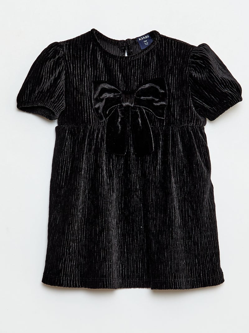 Robe en velours côtelée avec nœud fantaisie - Noir