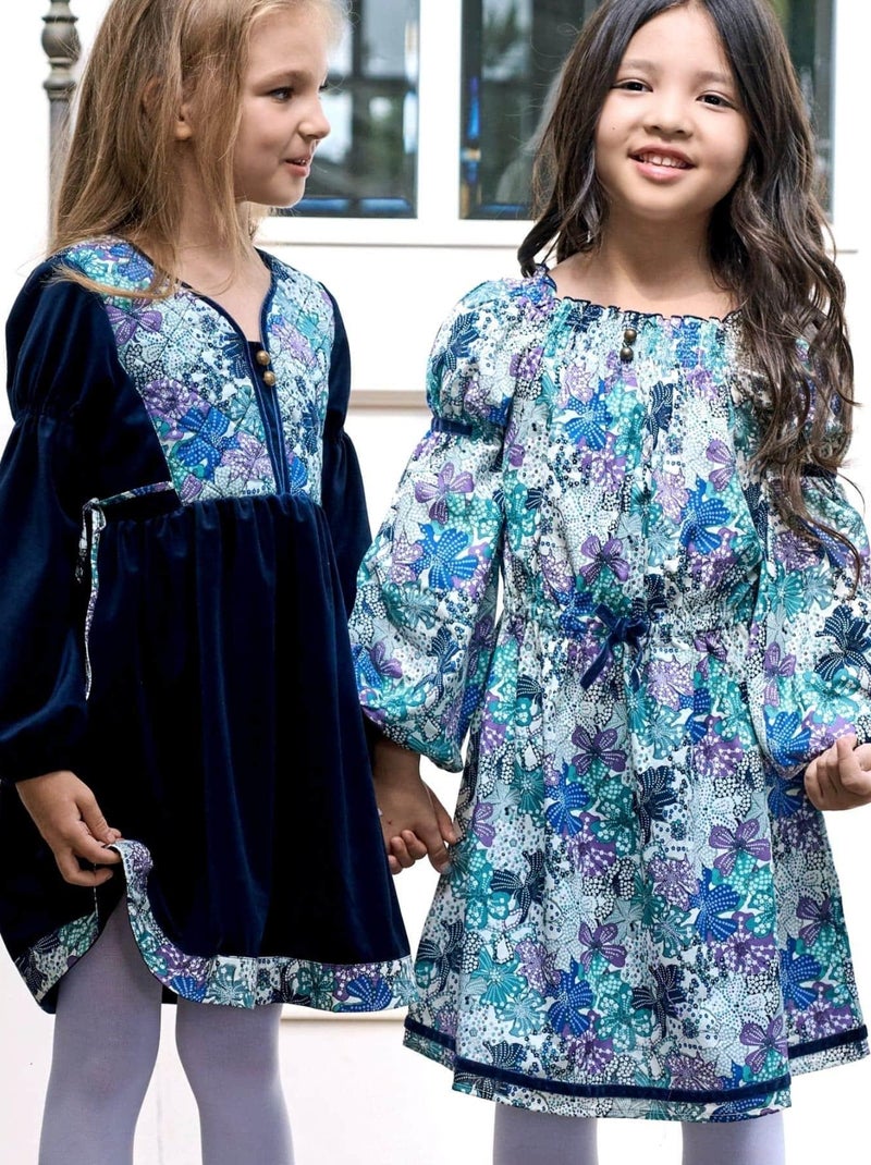 Robe Intersaison Liberty Fleuri et CHIMENE - La Faute à Voltaire - Bleu Violet Blanc