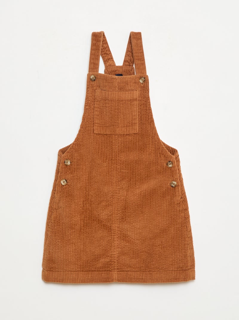 Robe salopette à poche en velours côtelé - Marron