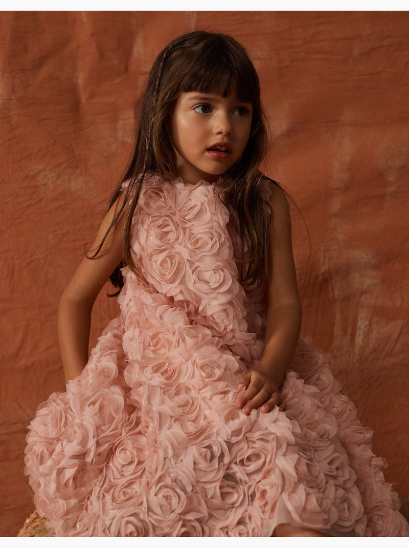 Robe sans manches évasée avec roses - Rose clair