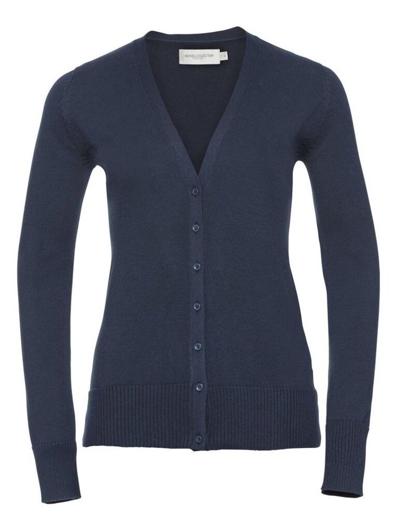 Russell Collection Ladies/Womens - Cardigan en tricot à col en V - Bleu marine