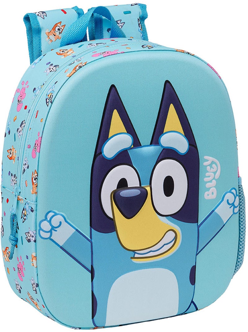 Sac à dos maternelle 3D Bluey en polyester 300D - Bleu Bleu ciel Blanc
