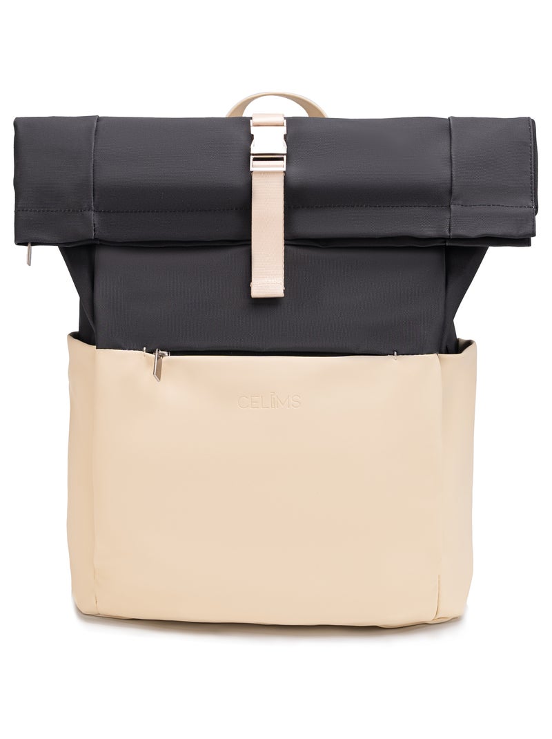 Sac à dos Roll-Top | Bagage à Main 40x30x20cm | Imperméable | Gourde Incluse | CELIMS France - Beige