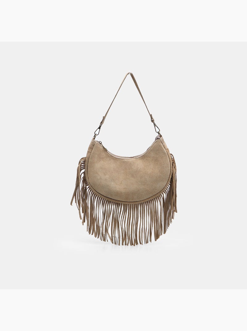 Sac modèle hobo en daim avec franges Bata - Beige