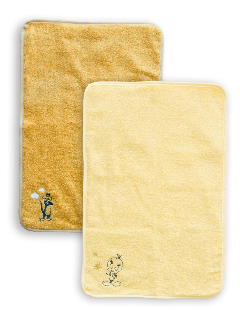 Set de 2 Serviettes Brodées - LOONEY TUNES - Change Bébé - Matière Eponge Absorbante - 100% coton - Orange