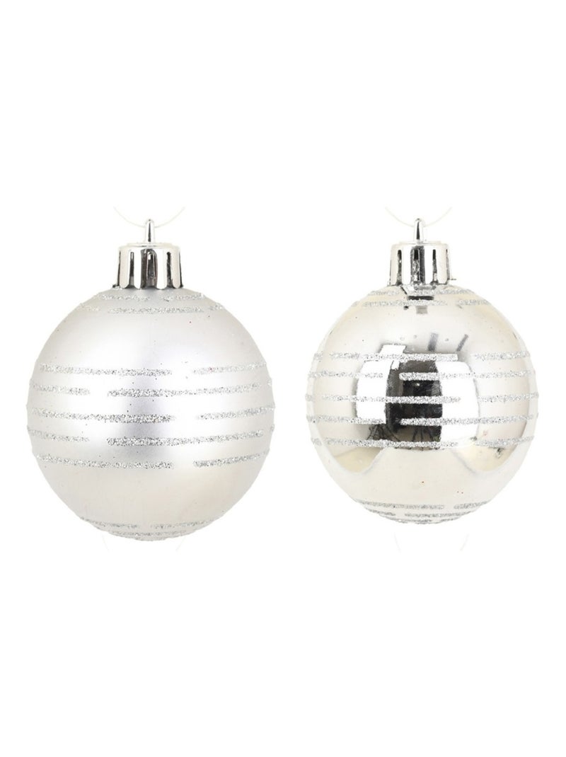 Set de 8 Boules de Noël Rayures Argent - Argent