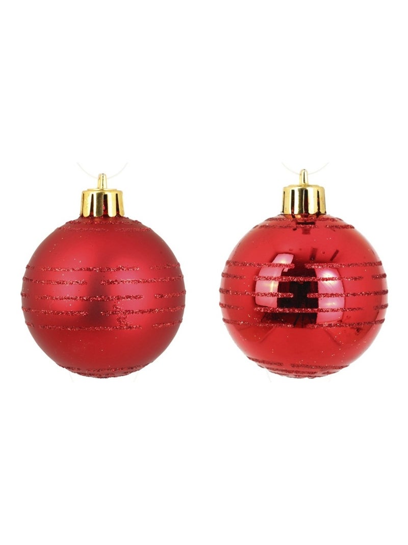 Set de 8 Boules de Noël Rayures Rouge - Rouge