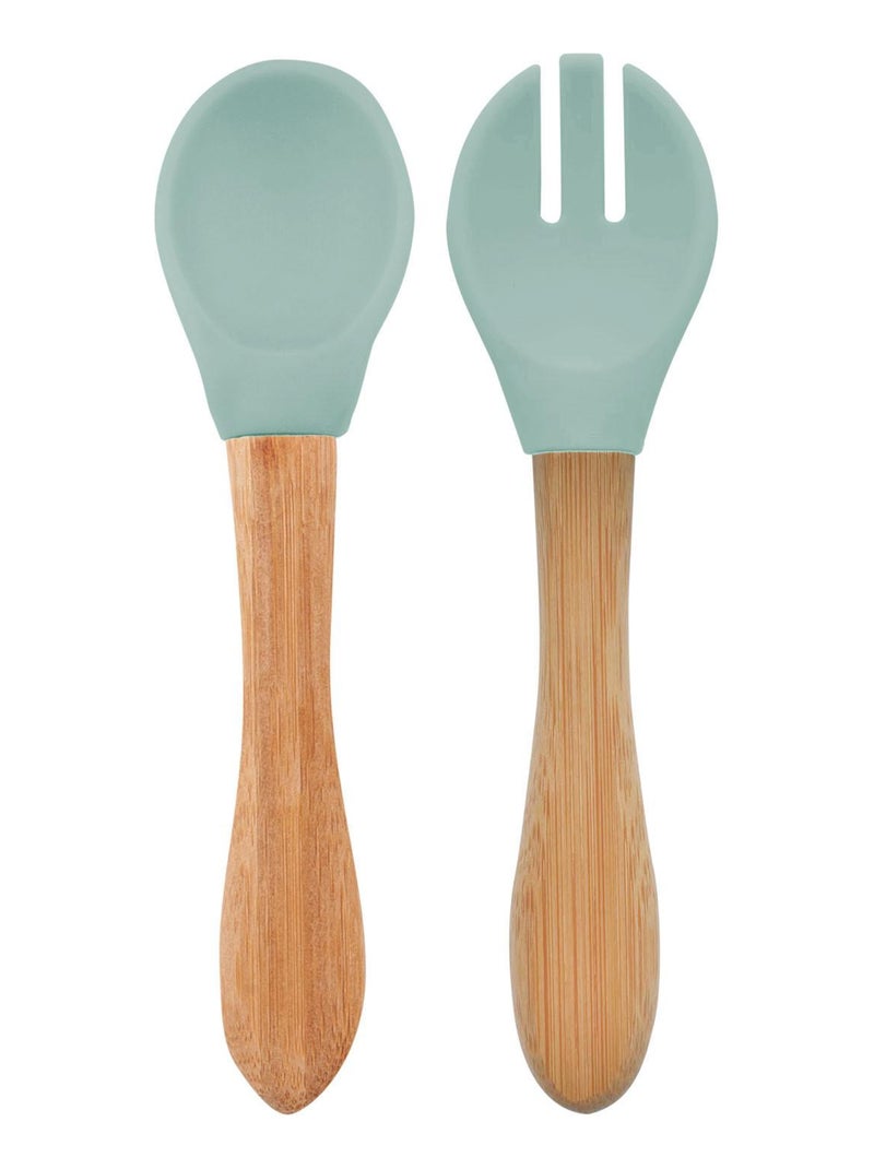 Minikoioi|Set de couverts bébé fourchette et cuillère - Vert