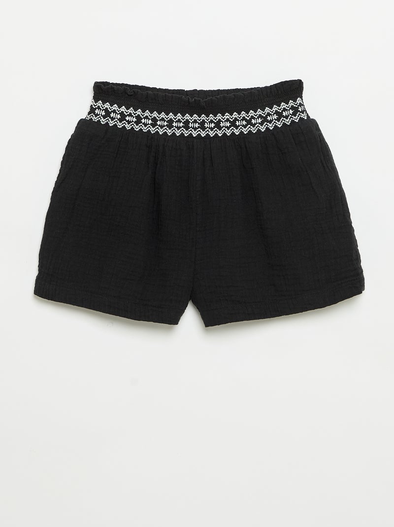 Short brodé en gaze de coton - Noir