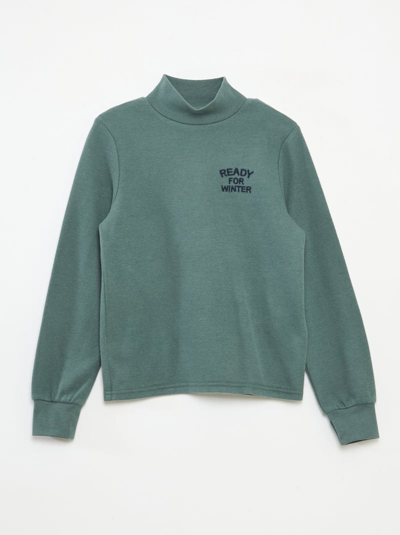 Sous pull avec broderie en coton uni - Vert