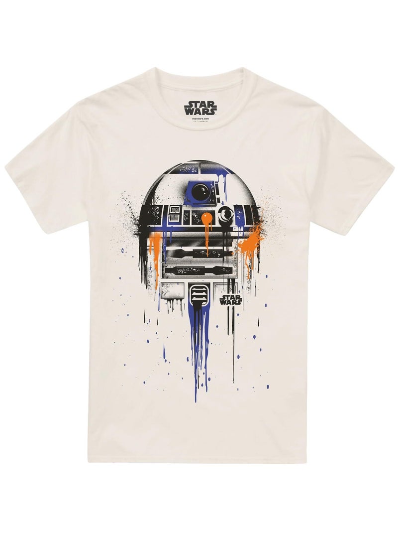 Star Wars - T-shirt motif R2-D2 style peinture dégoulinante - Blanc cassé