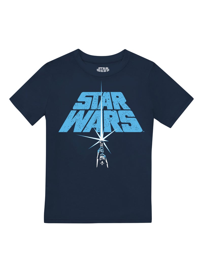 La Guerre des étoiles - T-shirt motifs sabre laser et logo - Bleu marine