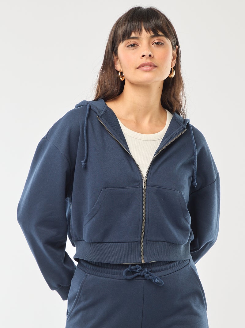 Sweat à capuche crop top - Bleu