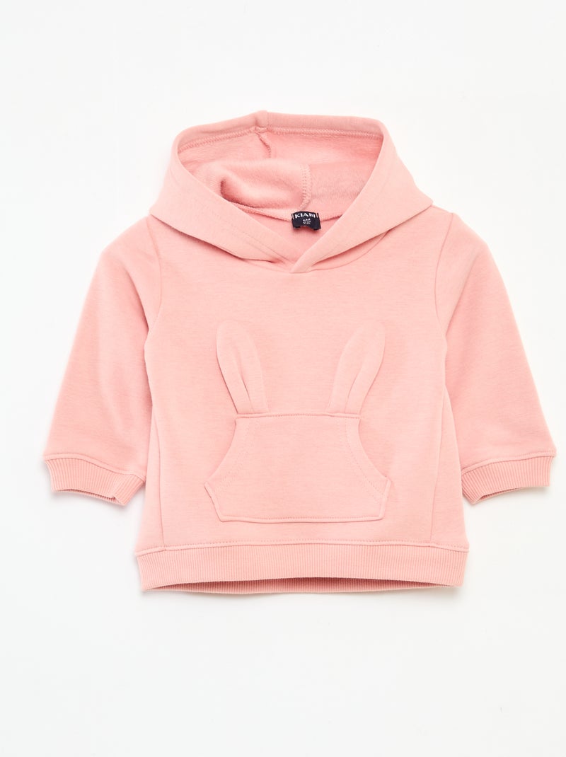 Sweat à capuche en molleton animé lapin - Rose