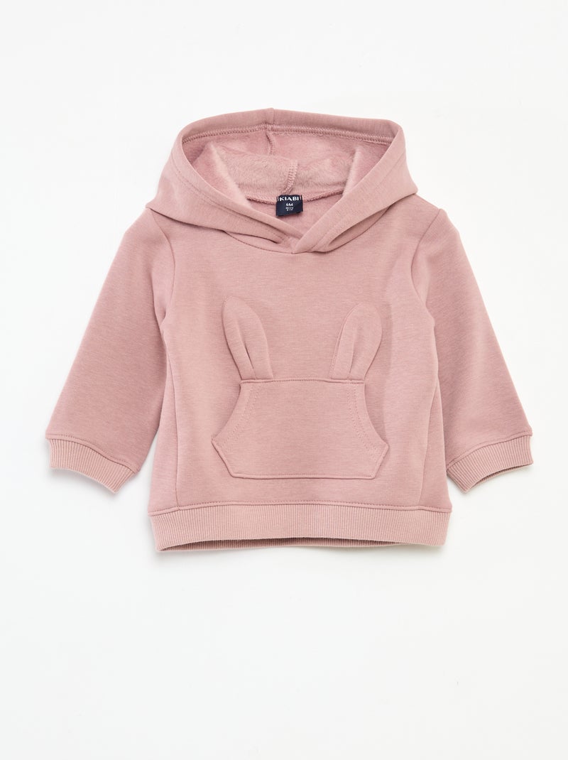 Sweat à capuche en molleton animé lapin - Rose