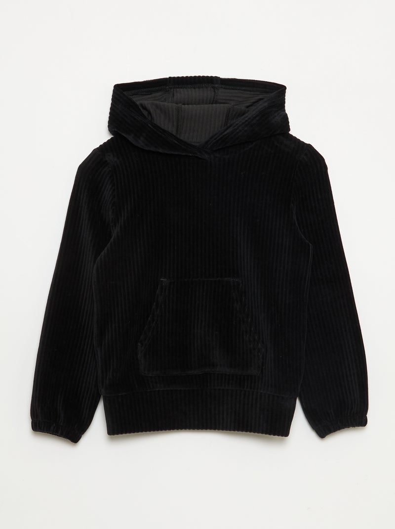 Un sweat à capuche qui change des basiques avec son velours côtelé.