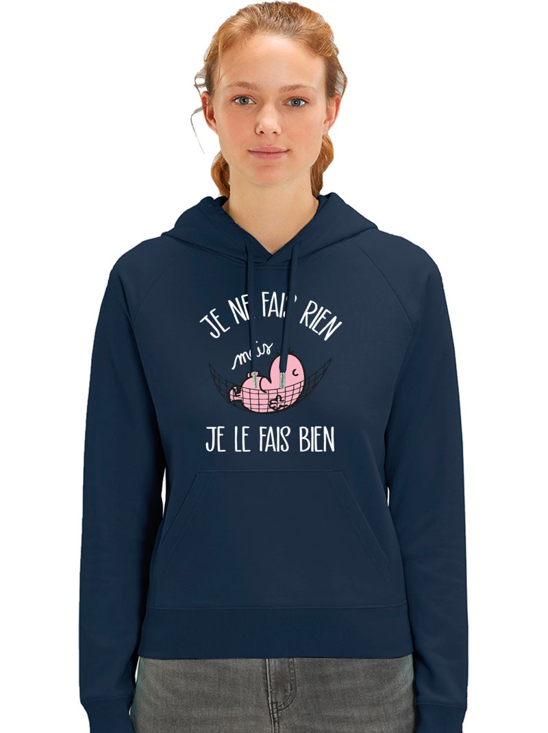 Sweat à capuche Femme - JE NE FAIS RIEN MAIS JE LE FAIS BIEN - Bleu marine