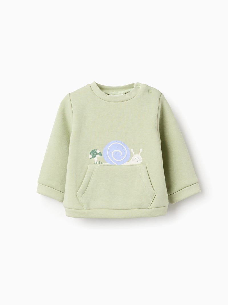 Sweat avec doublure en peluche douce synthétique et imprimé - Vert clair