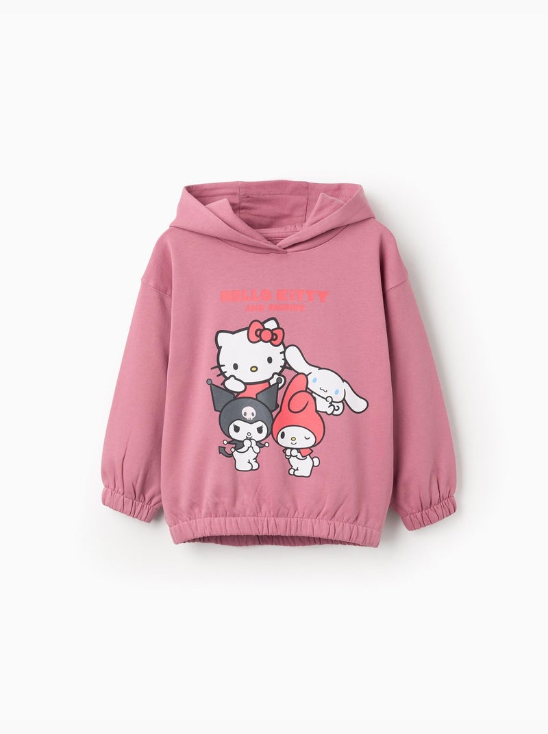 Sweat en coton peigné à capuche et imprimé Hello Kitty - Rose foncé