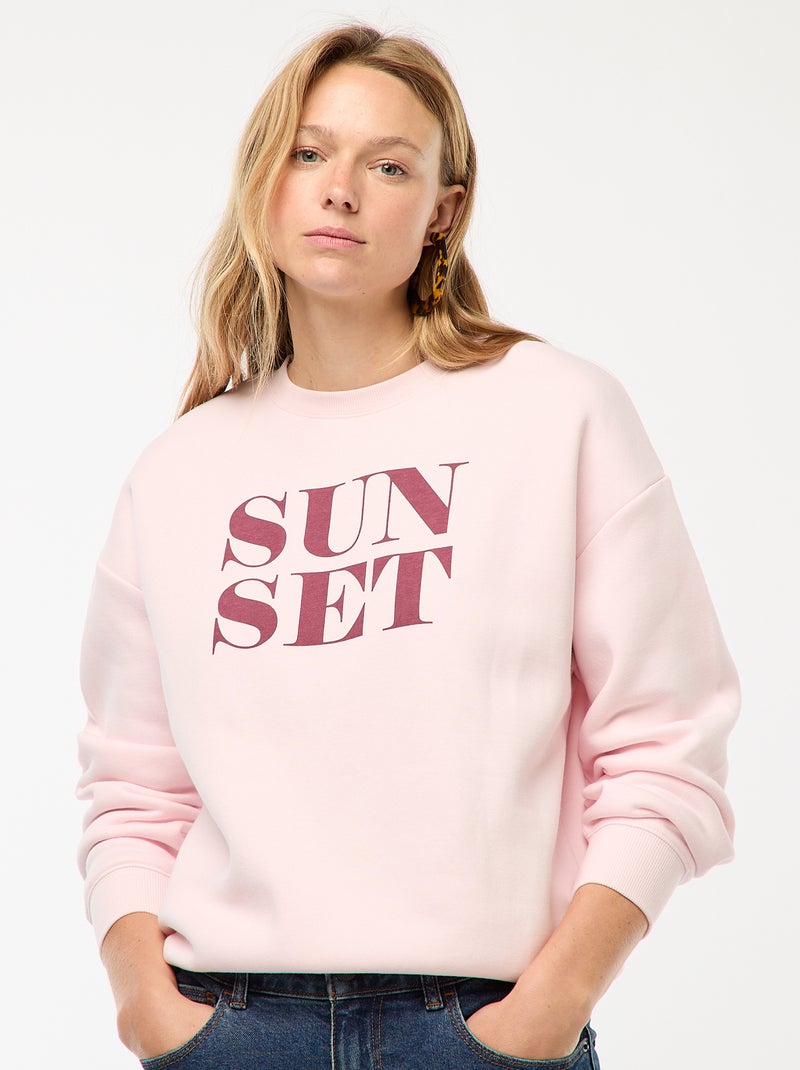 Sweat en molleton à message - Rose