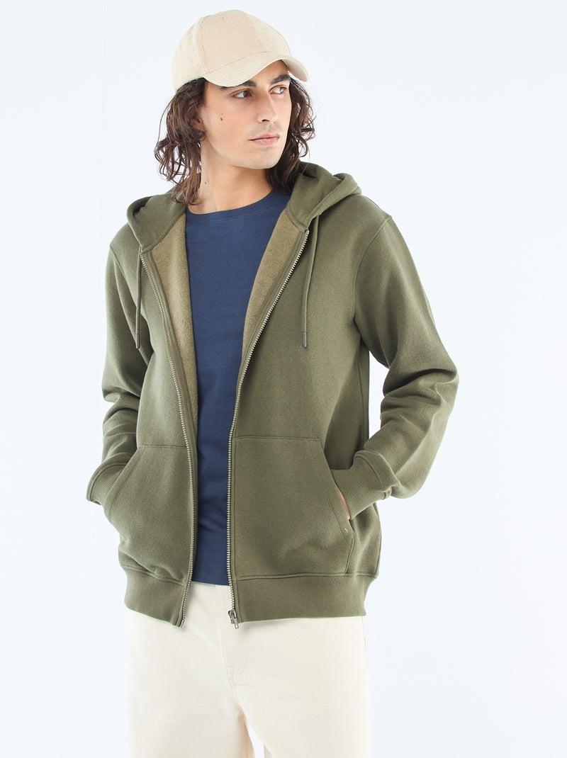 Sweat en molleton zippé à capuche - Kaki