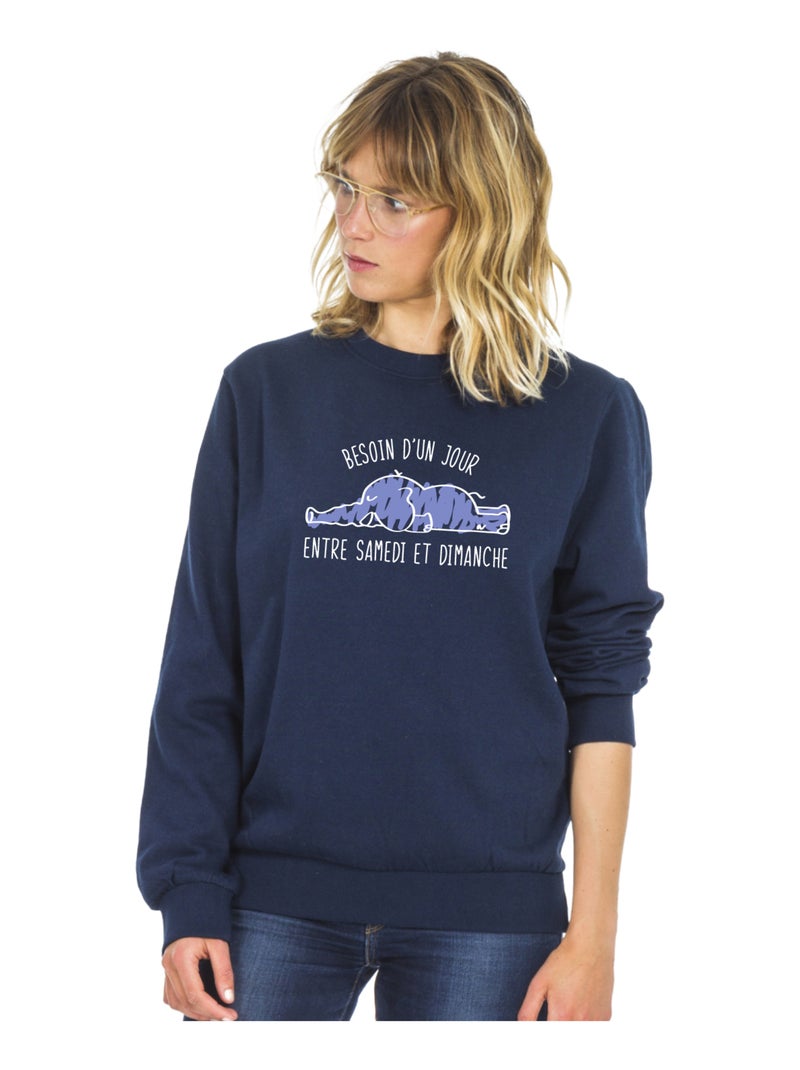 Sweat Femme - BESOIN D'UN JOUR ENTRE SAMEDI ET DIMANCHE - Bleu marine