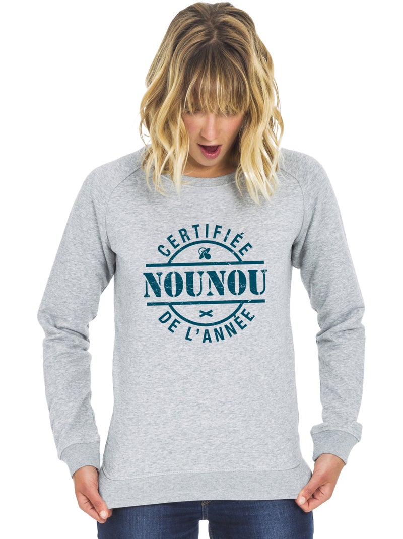 Sweat Femme - CERTIFIÉE NOUNOU DE L'ANNÉE - Gris chiné