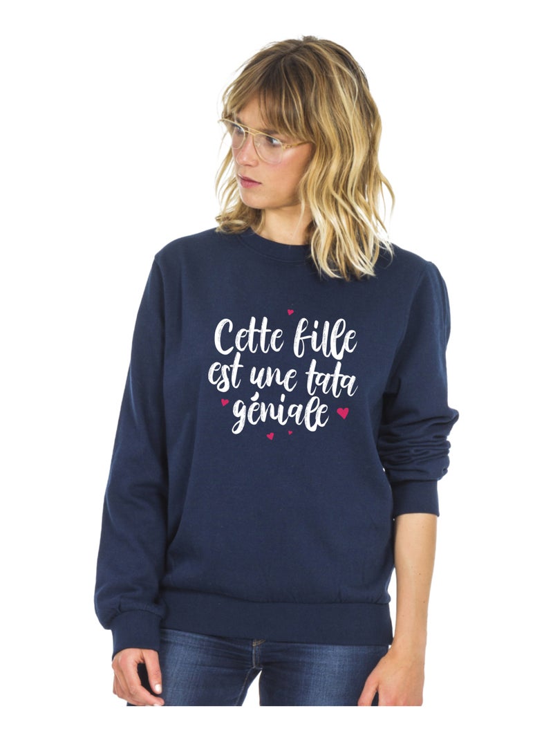Sweat Femme - CETTE FILLE EST UNE TATA GÉNIALE - Bleu marine