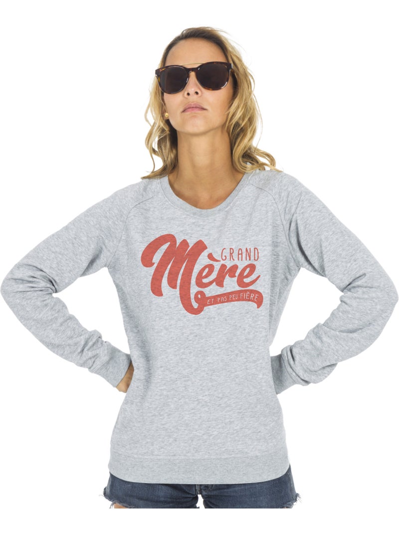Sweat Femme - GRAND MÈRE ET PAS PEU FIÈRE - Gris chiné