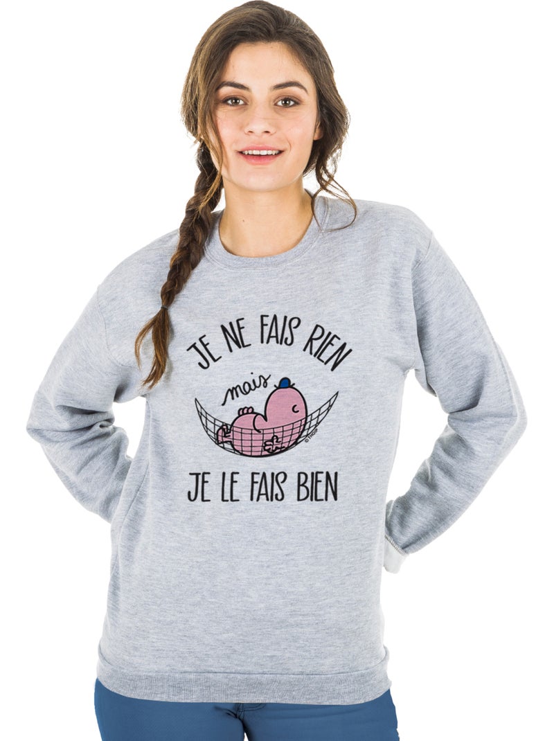 Sweat Femme - JE NE FAIS RIEN MAIS JE LE FAIS BIEN - Gris chiné