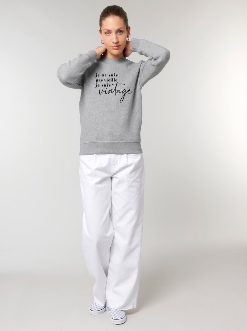 Sweat Femme - JE NE SUIS PAS VIEILLE JE SUIS VINTAGE - Gris chiné