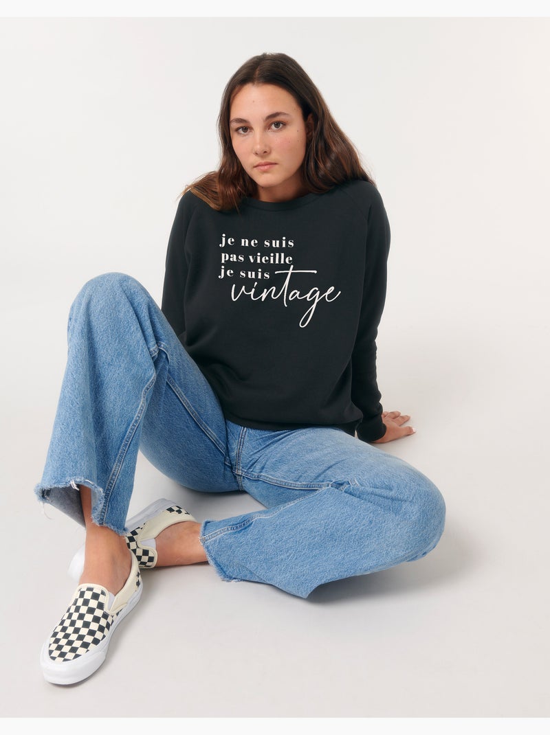 Sweat Femme - JE NE SUIS PAS VIEILLE JE SUIS VINTAGE - Noir