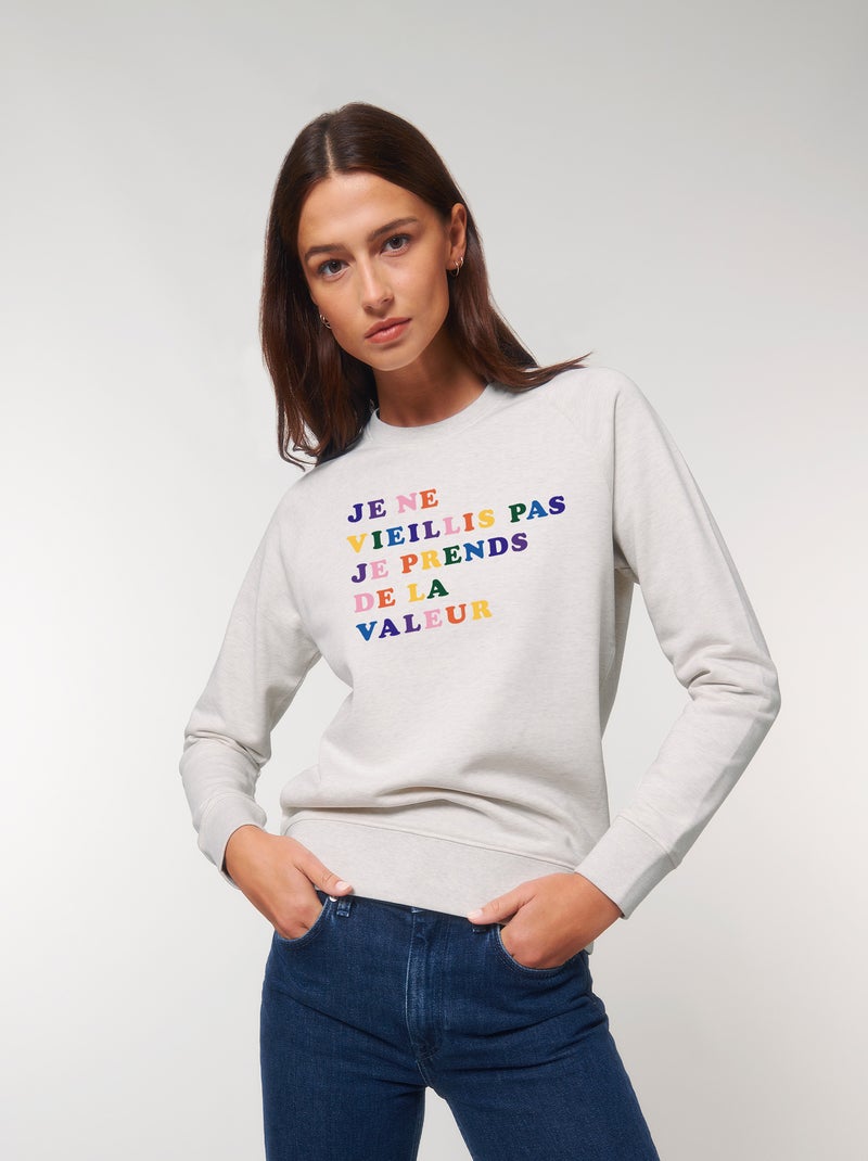 Sweat Femme - JE NE VIEILLIS PAS JE PRENDS DE LA VALEUR COLORE - Blanc