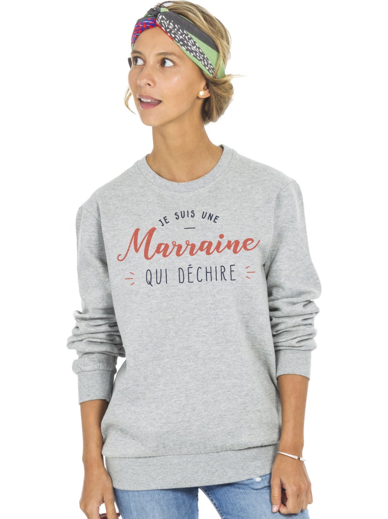 Sweat Femme - JE SUIS UNE MARRAINE QUI DÉCHIRE - Gris chiné