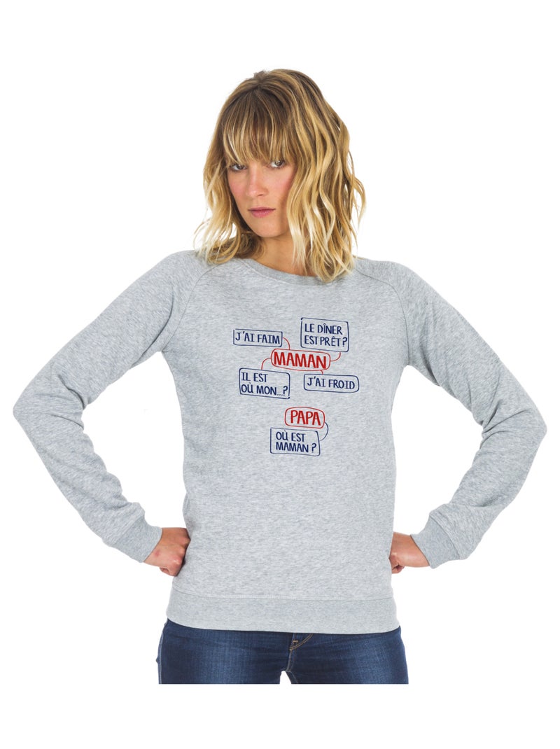 Sweat Femme - MAMAN J'AI FAIM, LE DINER EST PRÊT? IL EST OÙ MON?... - Gris chiné