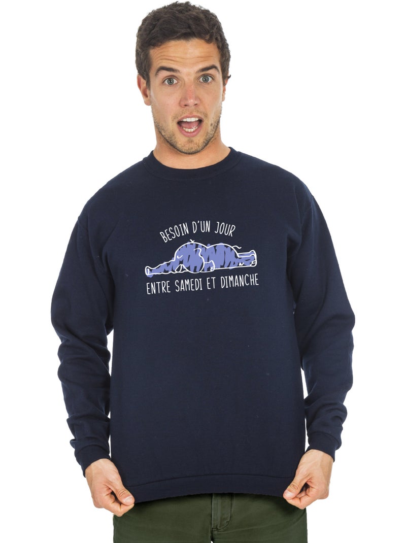 Sweat Homme - BESOIN D'UN JOUR ENTRE SAMEDI ET DIMANCHE - Bleu marine