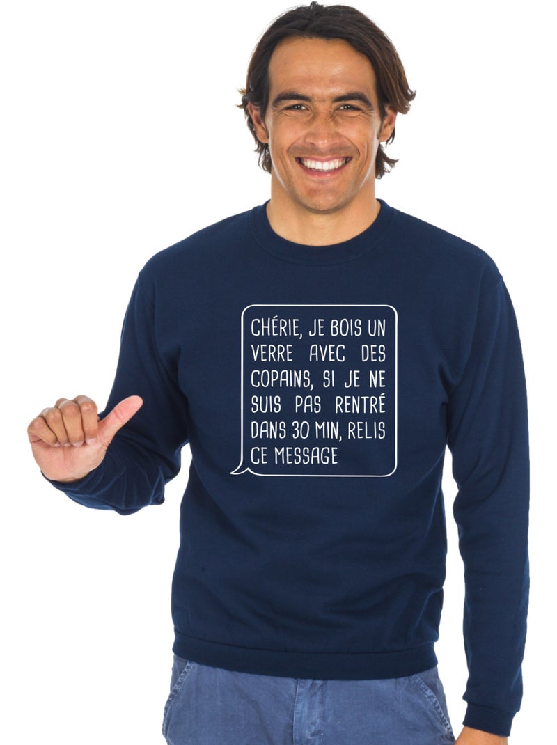 Sweat Homme - CHÉRIE, JE BOIS UN VERRE AVEC DES COPAINS - Bleu marine