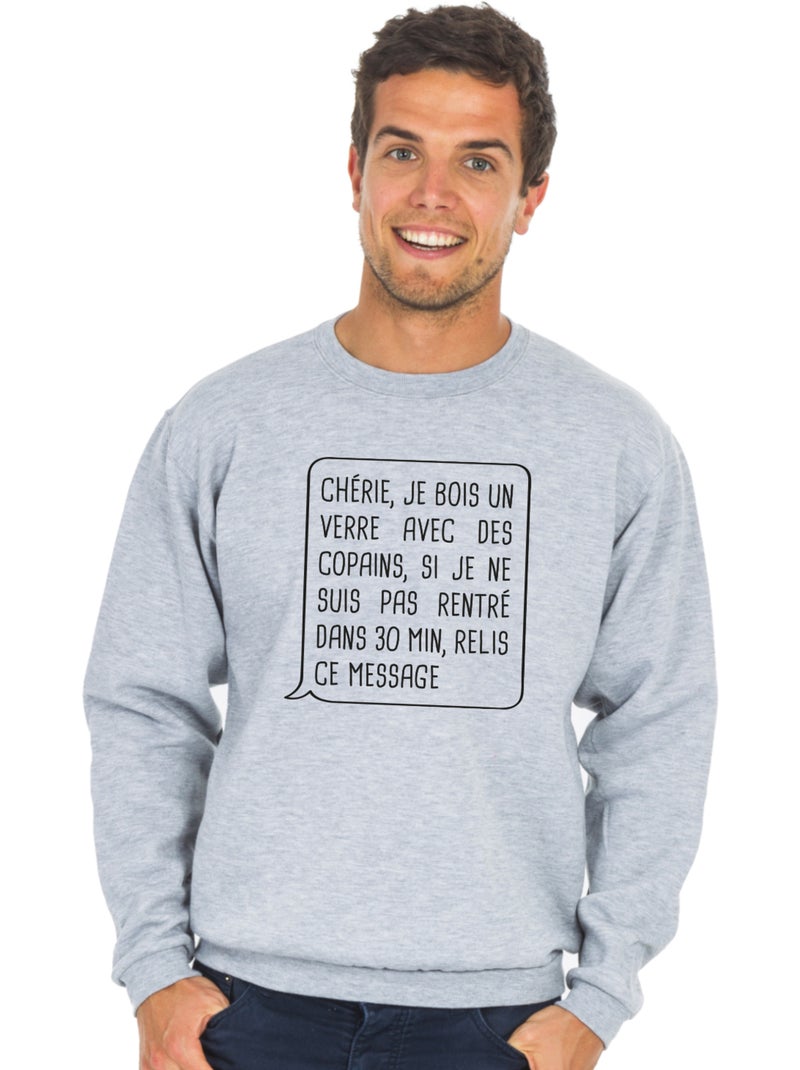 Sweat Homme - CHÉRIE, JE BOIS UN VERRE AVEC DES COPAINS - Gris chiné