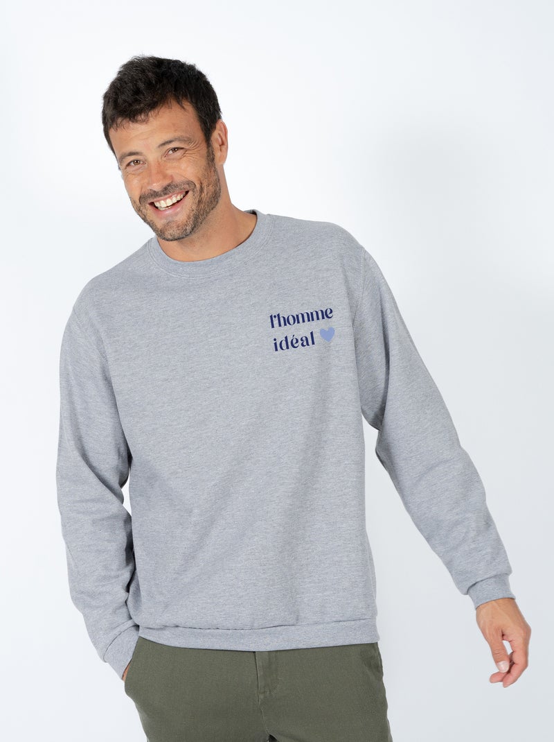 Sweat Homme - L HOMME IDEAL COEUR - Gris chiné