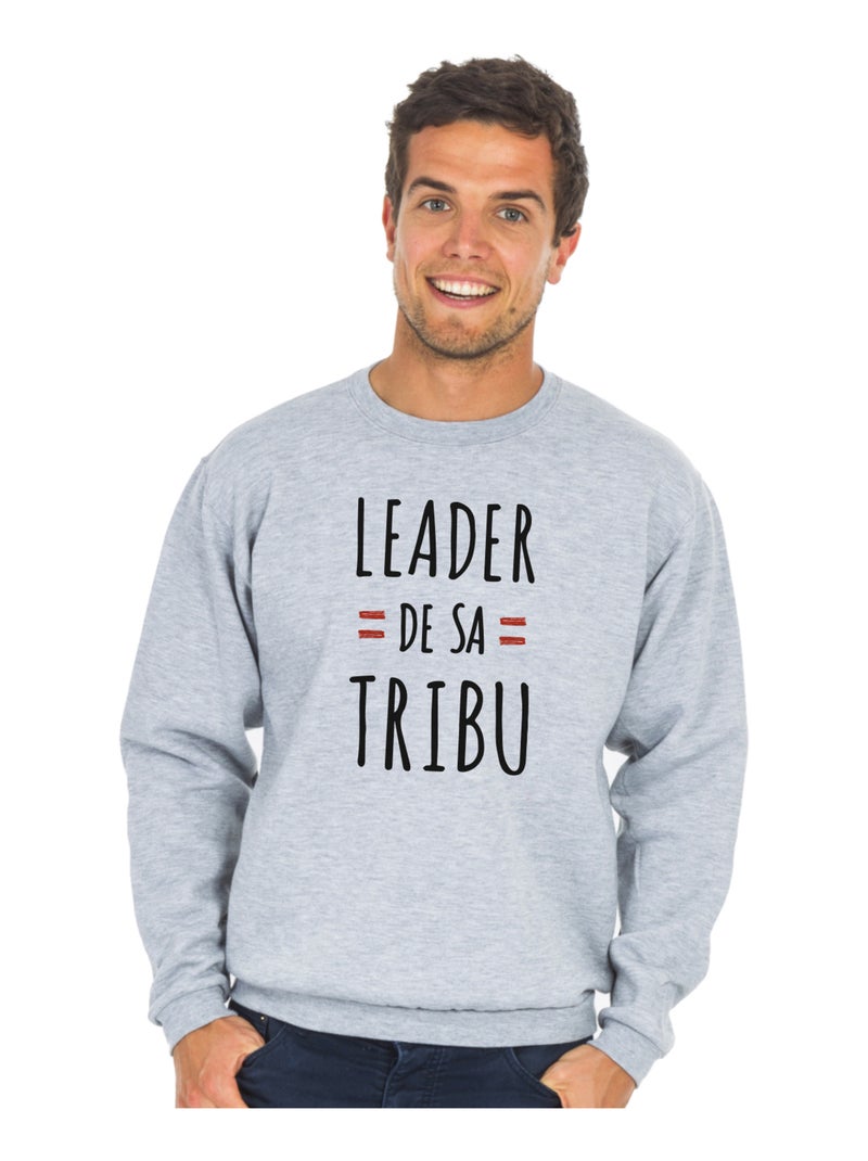 Sweat Homme - LEADER DE SA TRIBU - Gris chiné