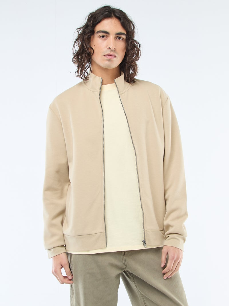 Sweat zippé col montant - Beige