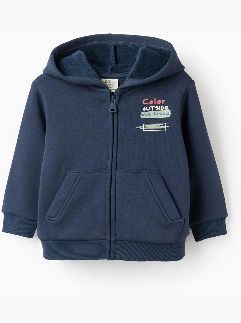 Sweat zippé en coton peigné à capuche - Bleu foncé