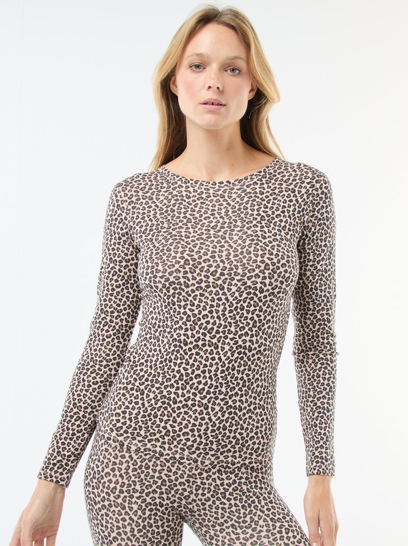 T-shirt thermorégulateur à manches longues col rond - Beige