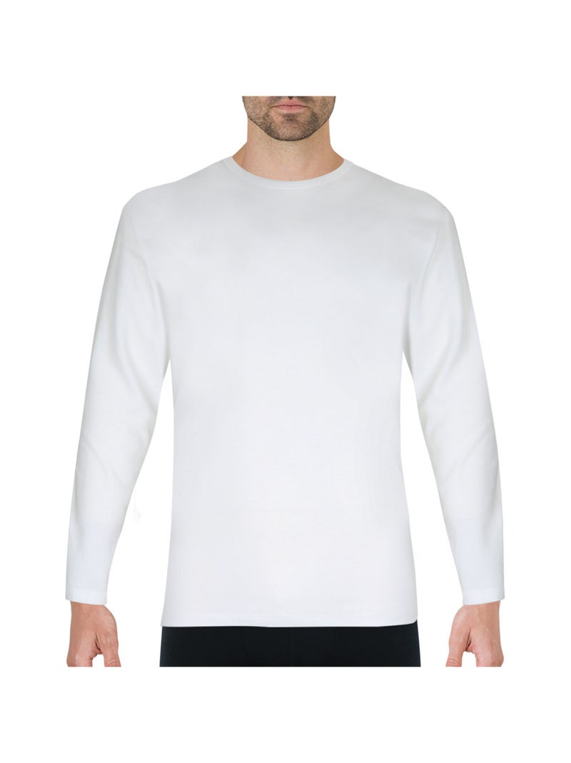 T-shirt col rond manches longues homme Pur Coton Premium Eminence - Blanc