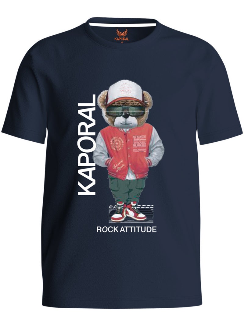 T-shirt en coton biologique marine imprimé avec une coupe droite et un col rond - Bleu marine