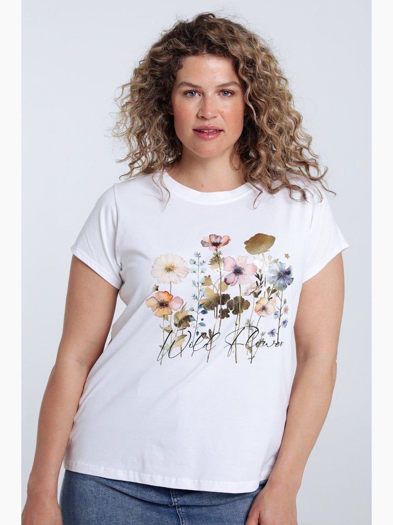 T-shirt en coton imprimé floral avec foil - Blanc