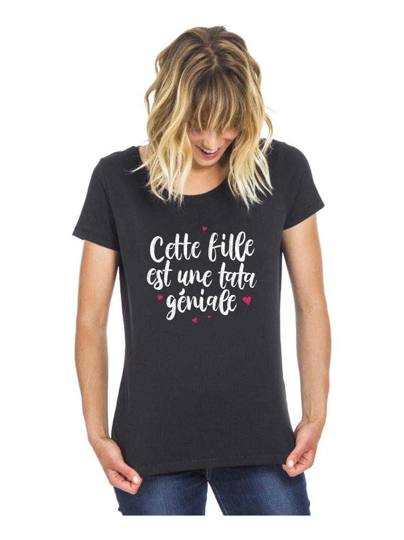 T-shirt Femme - CETTE FILLE EST UNE TATA GÉNIALE - Noir