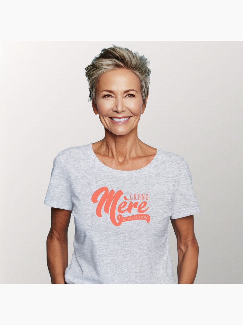 T-shirt Femme - GRAND MÈRE ET PAS PEU FIÈRE - Gris chiné