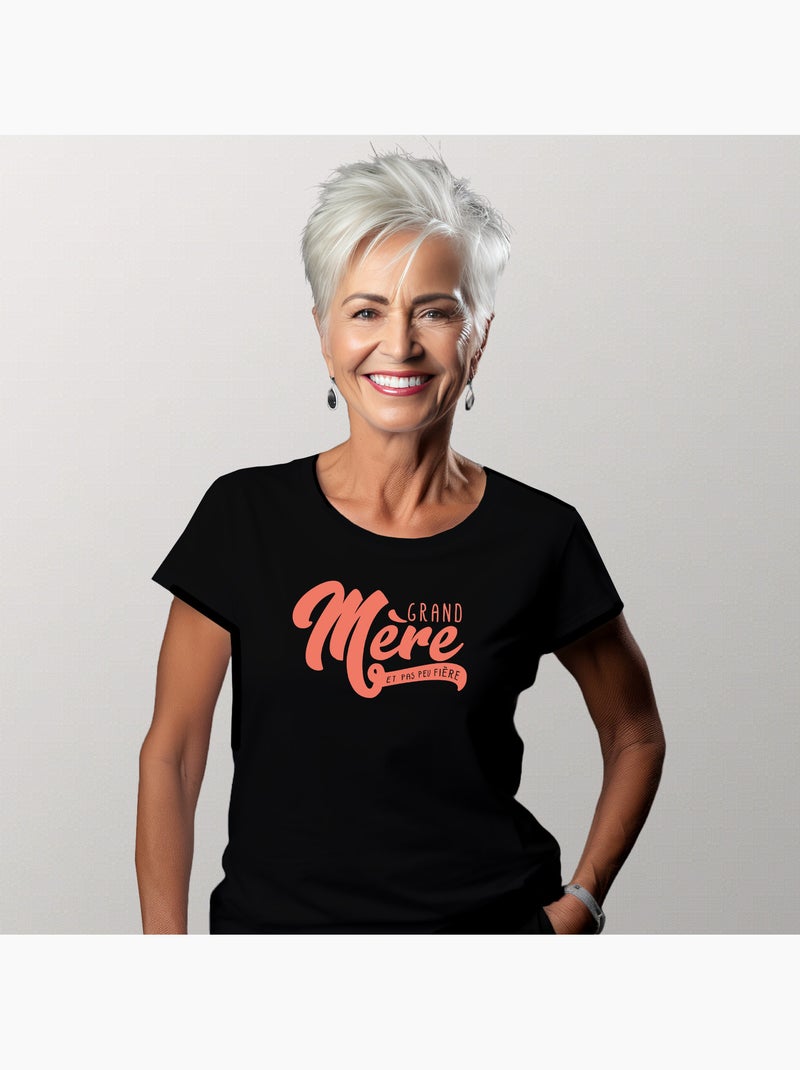 T-shirt Femme - GRAND MÈRE ET PAS PEU FIÈRE - Noir