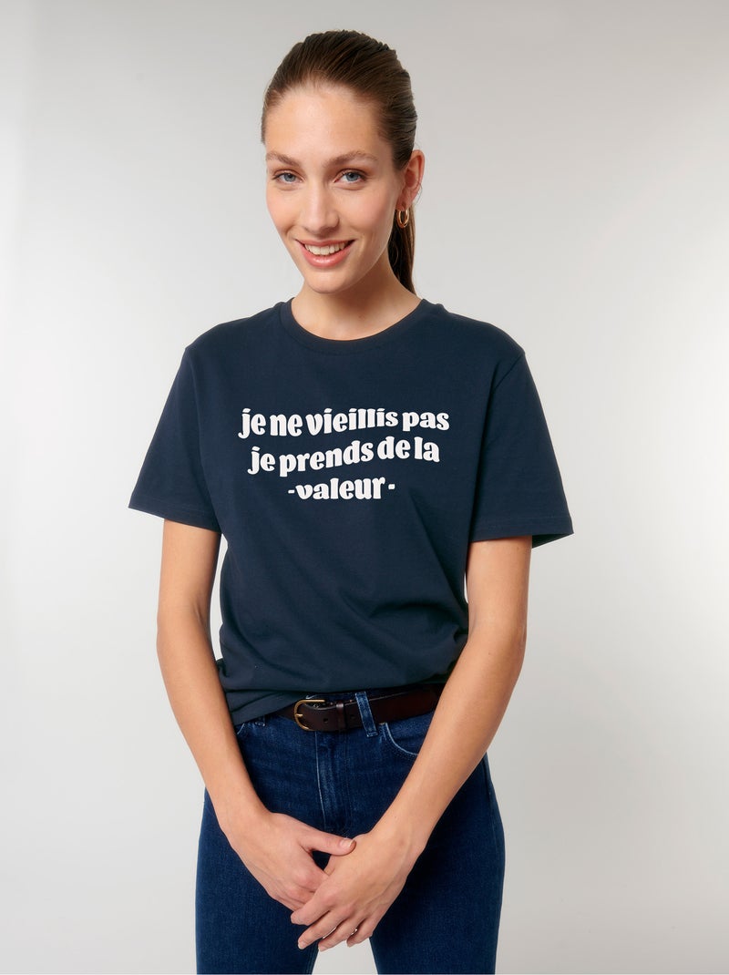 T-shirt Femme - JE NE VIEILLIS PAS JE PRENDS DE LA VALEUR BLEU - Bleu marine